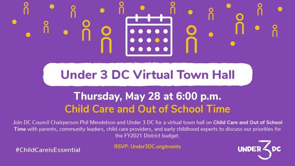 Under3DC has two Town Halls coming up – one TONIGHT at 6pm and another on June 4th at 6pm! More details about both events are on the Under 3 DC website – https://www.under3dc.org/