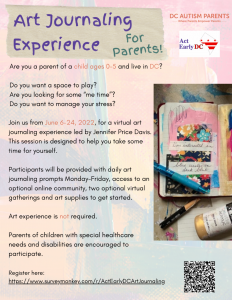 Act Early DC – Art Journaling Experience for Parents!0On May 20, 2022May 20, 2022By AJE-DCIn Blog, Custom, Events, NewsAre you a parent of a child ages 0-5 and live in DC? If so, Act Early DC wants to be sure you’re having “me time.” Below is an event fo you! Register Today!