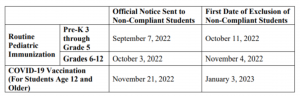 Shown below is the new deadline for immunization compliance, for the full letter click here.