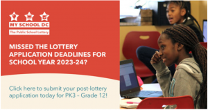If you know of a family that did not receive their lottery results, cannot access their My School DC account, or need help understanding their results and next steps, please direct them to contact the My School DC Hotline. They are available Monday – Friday, 8 a.m. – 5 p.m. at (202) 888-6336 or info.myschooldc@dc.gov.