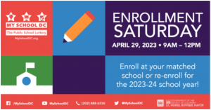 Enrollment Saturday will take place between 9 a.m. and 12 p.m. A list of participating schools is available at www.myschooldc.org/enroll/enrollment-saturday.