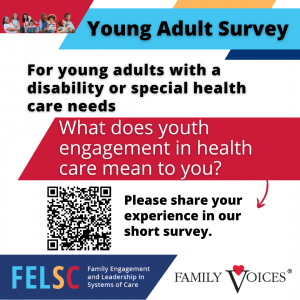 • A young adult with a disability or special health care needs (18-26 years old). Click here to complete the youth survey.