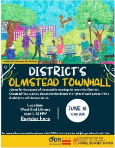 AJE would like to share resources from the ODR’s May Newsletter about the upcoming District’s Olmstead Townhall. This event is the second of three public meetings aimed at fostering collaboration between community stakeholders and District agencies. The Olmstead Townhall meetings seek to enhance community-based services for individuals with disabilities in housing, employment, healthcare, and transportation. Your input and experiences are invaluable in creating a more inclusive and supportive community. For more information and registration, please see below.