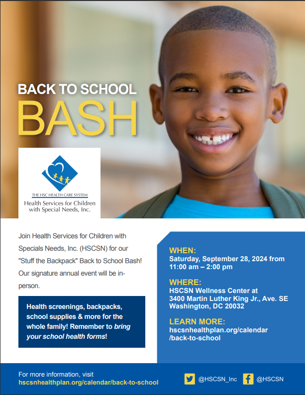 Get ready for a fun-filled day with the whole family! HSCSN is hosting its annual Stuff the Backpack Back to School Bash, featuring music, food, free school supplies, health screenings, free haircuts, community resources, and much more. See below for more information.