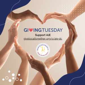 Remember – please SHARE your #GivingTuesday plans on social media and TAG us! (@AJEDCinc on Facebook | @AJEInc on Twitter | @aje_dc on Instagram) and ASK others to Support AJE, especially during the this last Power Hour. Finally, you can use this Linktree to easily share our Giving Tuesday link (https://www.givelocaltogether.org/o/aje-dc), and other information about us at the same time – https://linktr.ee/AJE.DC.