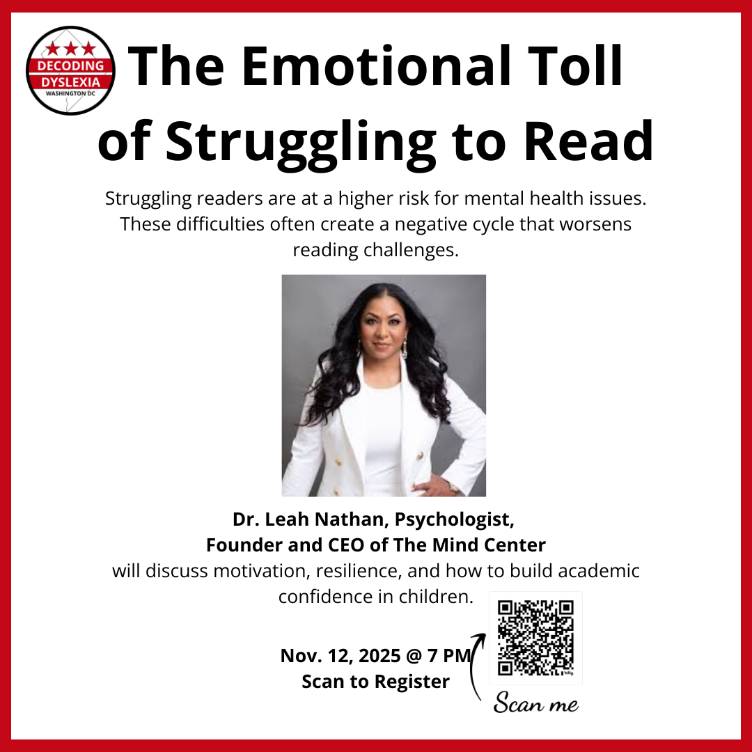 Decoding Dyslexia DC’s Speaker Series will host Dr. Leah Nathan, founder and CEO of The Mind Center, on November 12th at 7 P.M.