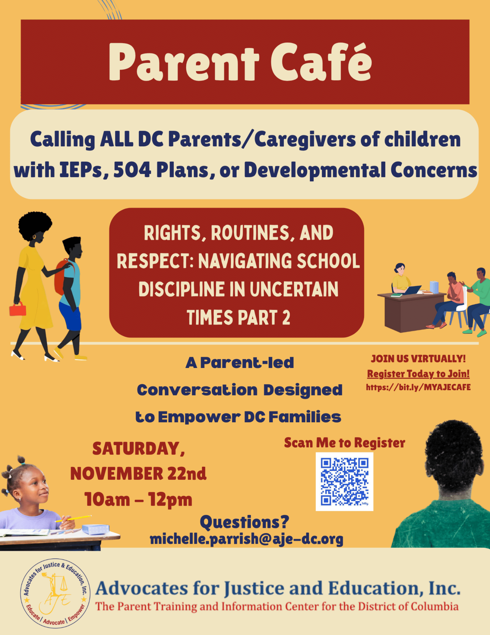 Join AJE on Saturday, November 22 from 10:00 AM to 12:00 PM for a parent-led conversation designed to empower D.C. families!